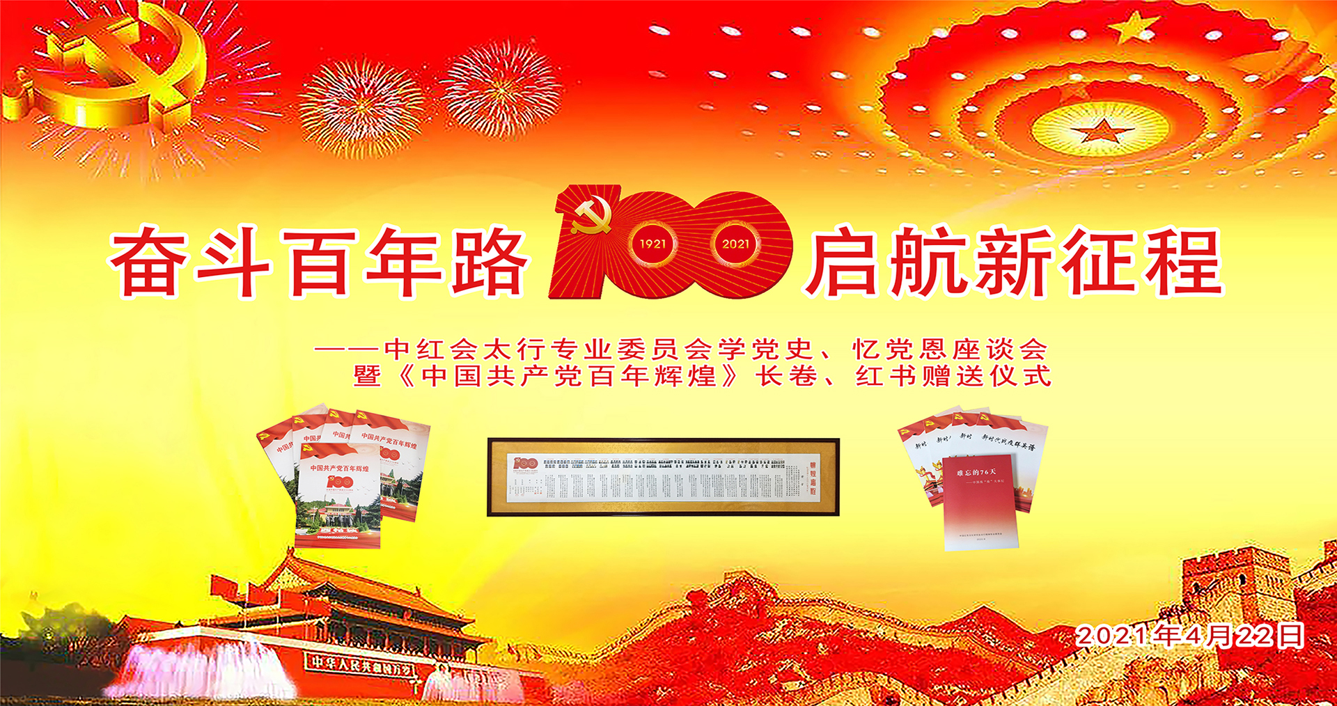 為慶祝中國共產黨建黨100周年,積極響應黨史學習教育的開展,4月22日上午,中國紅色文化研究會太行精神專業委員會舉行學黨史·憶黨恩座談會暨《輝煌里程》長卷、《中國共產黨百年